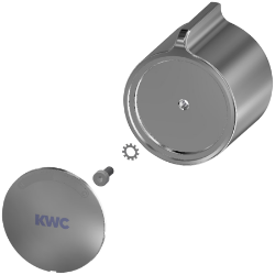 Temperaturwahlgriff aus Metall, mit Steg, für F3E-Therm Thermostatbatterie, komplett mit Abdeckplättchen.