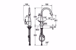 Im Auslauf der Armatur ist ein mit einem flexiblen Schlauch verbundener Auszug integriert.
