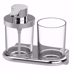 Kombihalter NIA ADESIO Seifenspender und Glashalter Tritan-Glas unzerbrechlich BPA-frei, Montage Kleben oder Bohren, mit Befestigungsmaterial, ohne Klebstoff SikaFast
