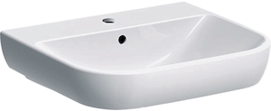 Geberit Smyle Waschtisch: B=55cm, T=48cm, Hahnloch=mittig, Überlauf=sichtbar, weiss-alpin